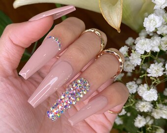 20 Stunning Long Coffin Nails With Rhinestones You Must Love Women Fashion Lifestyle Blog Shinecoco Com