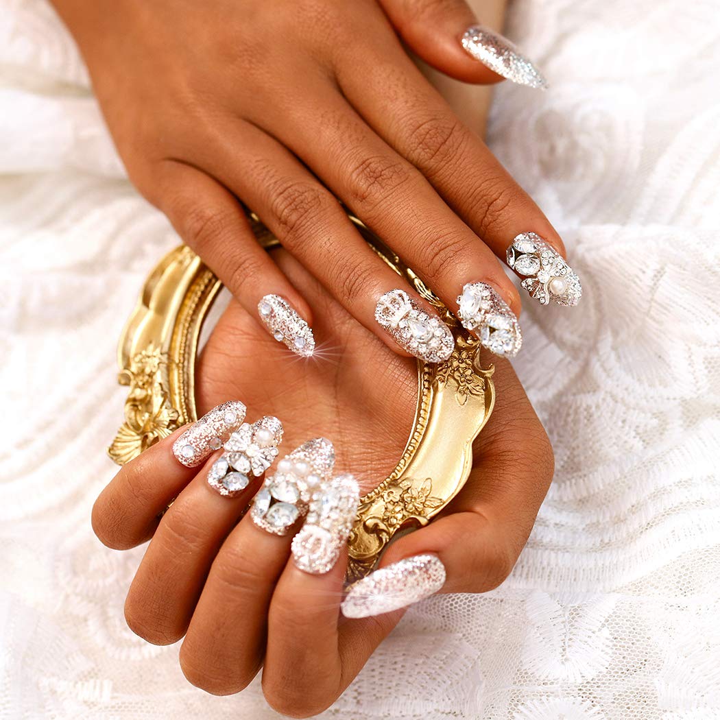 Amazon Com Drecode Rhinestones Press On Nails Medium Crystal False Nails With Designs Bling Luxury Bride Wedding Party Fake Nail Tip For Women And Girls 24 Pcs Beauty Personal Care
